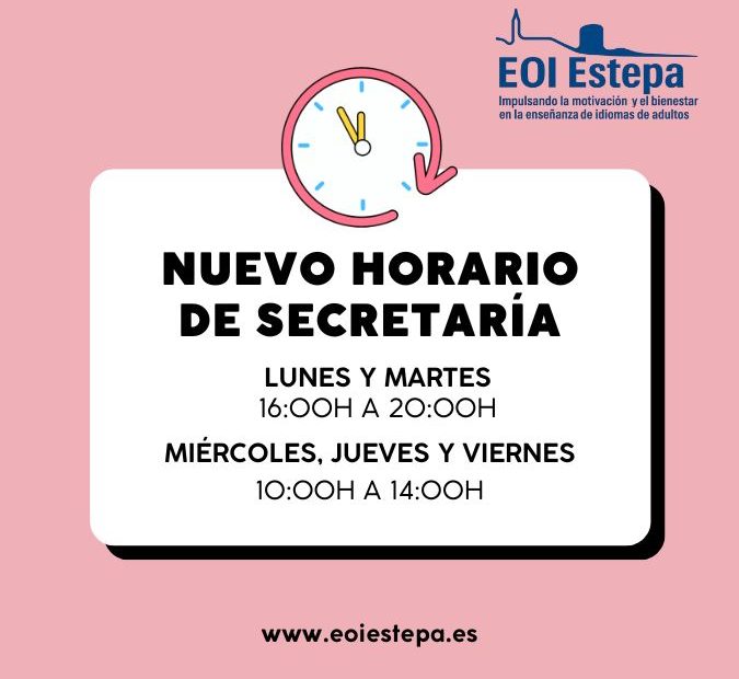 ¡Ya puedes consultar las fechas del calendario de la convocatoria de septiembre! FRANCÉS: Consulta aquí el calendario para las Pruebas de Certificación (alumnado libre y oficial que haya confirmado participación EN ABRIL) Consulta aquí el calendario de la evaluación final convocatoria ordinaria promoción (alumnado oficial). INGLÉS: Consulta aquí el calendario para las Pruebas de Certificación (alumnado libre y oficial que… Leer más »CALENDARIO PRUEBAS EXTRAORDINARIAS DE SEPTIEMBRE